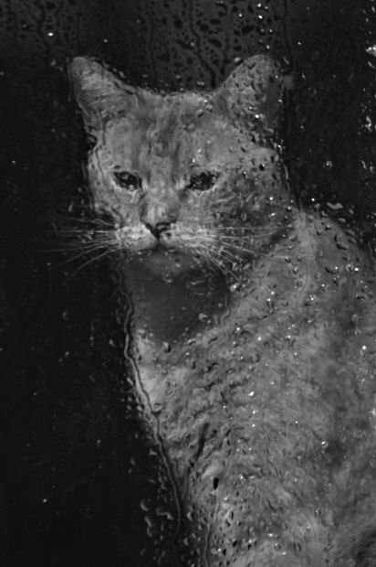 While the human has to work outside in the rain the cats complain they are warm and dry inside