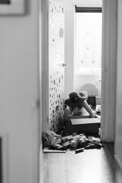 A Child builds on the floor of her bedroom