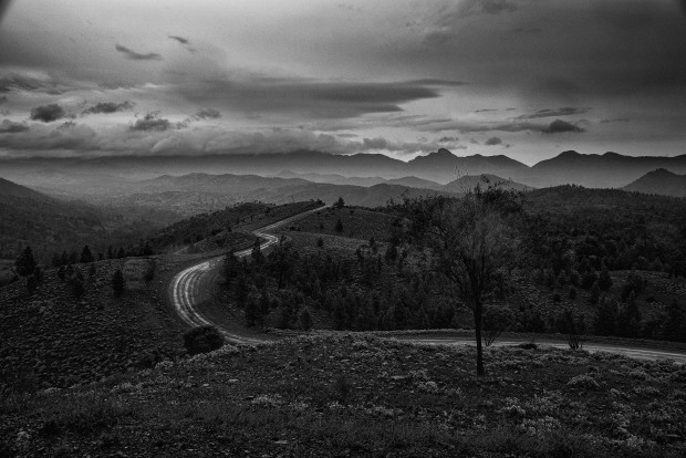 While driving through the Flinders Ranges on a wet and miserable day we stopped off at the famous Razorback ridge, where the rain and the gloom made it the perfect B/W