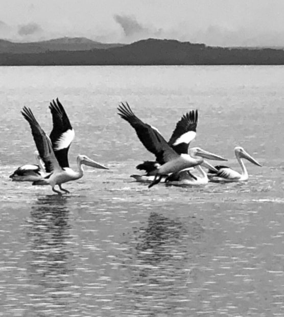 I caught these lovelies as they landed, gliding to a stop. Taken at Long Jetty, NSW, in October 2019 on my iPhone X. It was a grey day, so the only edit was to make it a mono official.
