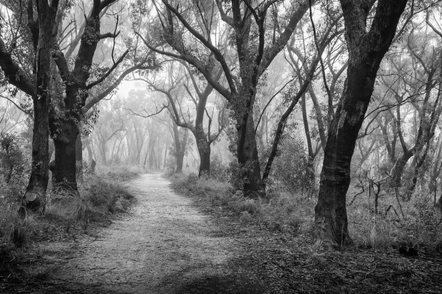 The Blue Mountains were devastated by the bushfires of our Black Summer of 2019/20. After two years, there are many areas that are still showing little sign of regrowth. But not here… Blackened gums, covered in new life, but desaturated in the morning mist. I just had to follow that theme and process this in black and white…