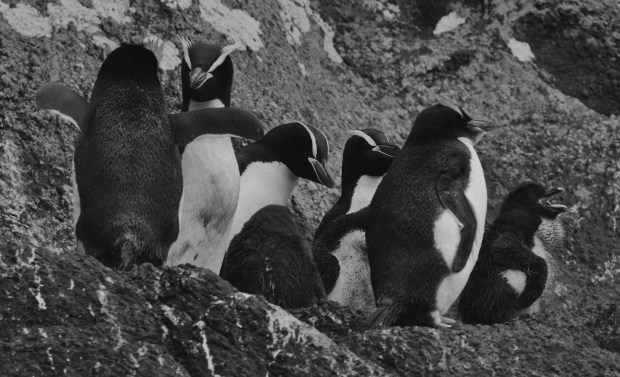 In Subantartic Island are an endemic species of Penguins. These chicks are nearly as big as their parents. They live on the cliff faces, saw them in the distance on a zodiac exploration. We were half way to Antartica, below New Zealand.