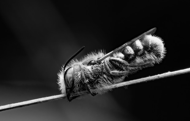 Unlike European honey bees which use a hive, this native bee had settled on a reed where it would roost for the night
