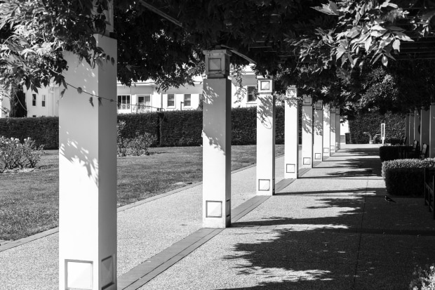The colonnade at the Rose Gardens of Old Parliament House, Canberra, taken on a bright autumn day