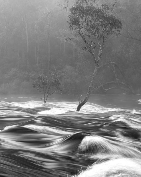 Fast flowing river Dwellingup WA after storms earlier this year.