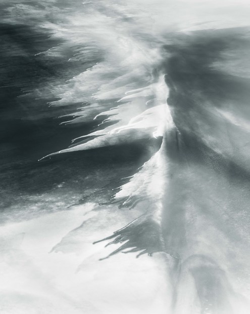 Early morning light reflecting off a shallow salt lake created a beautiful abstract aerial landscape.