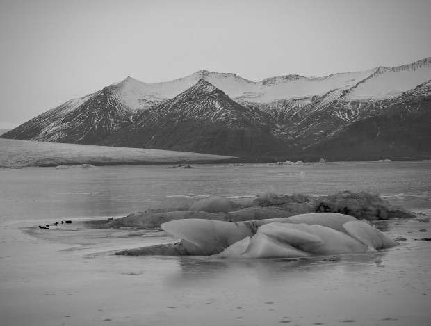 Glacial Ice floating in an inland Iceland Lake crowned with an Ice halo in the sky