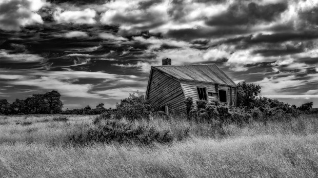 The old schoolhouse at Kelso, in Northern Tasmania. A few years back, part of the foundations collapsed, and the building has had a 'lean' ever since.