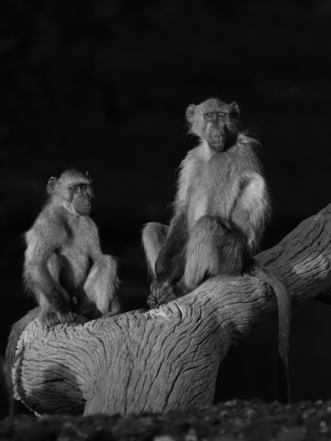 Its late afternoon in Mashatu, Botswana, we had finished our afternoon game drive and were heading back to the lodge. We were crossing the Limpopo River and in the last light I saw these 2 baboons sitting on a log. I asked our driver to stop and shot a couple of images before the light faded.