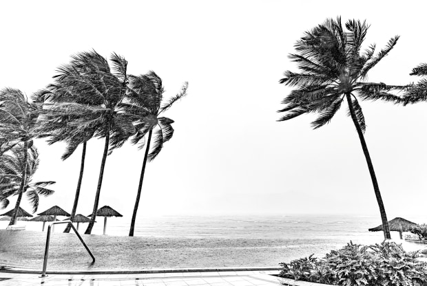 Midday storm in the tropical Whitsundays. Photo taken at Hamilton Island as strong winds and driving rain poured down.