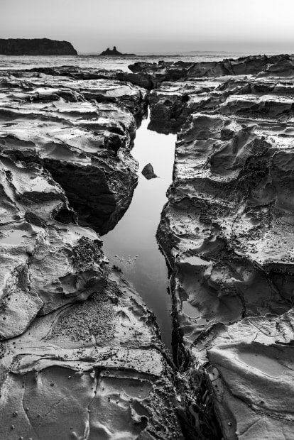 Shack Bay, near Inverloch in Victoria. During the 1934 Wonthaggi Coal Strike, a number of miners built shacks in this scenic bay. The shacks were eventually removed in 1977, but the name remained. The rock shelf along this coast line has many interesting features through the countless years of being battered by the Bass Strait waves and wind.