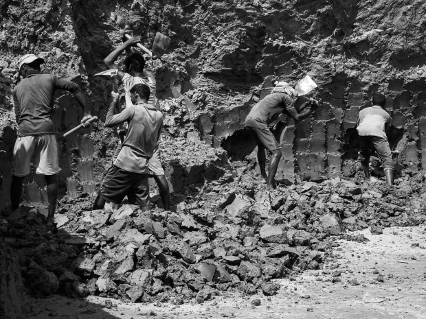 A photograph of muscularity. Akin to a frieze of olden times celebrating great tasks achieved or victories achieved. But here it is labourers in a Bangladesh brick making factory working hard, almost desperately to shape river mud into units suitable for brick making.
