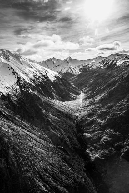 This was taken while on tour in Queenstown, New Zealand. I was on a glacier Helicopter tour at around 8:30am in the morning, the sun was glowing and the peaks had a fresh dusting of snow over night. We reaped the rewards scoring clear skies and gorgeous light coming over the high snow caped peaks.