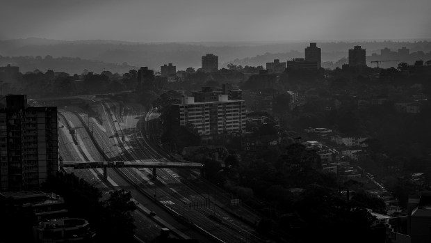 Sydney regularly gets shrouded in smoke during the Bushfire season. From a high vantage point the smoke gave a dramatic interplay with the Light and Shadows