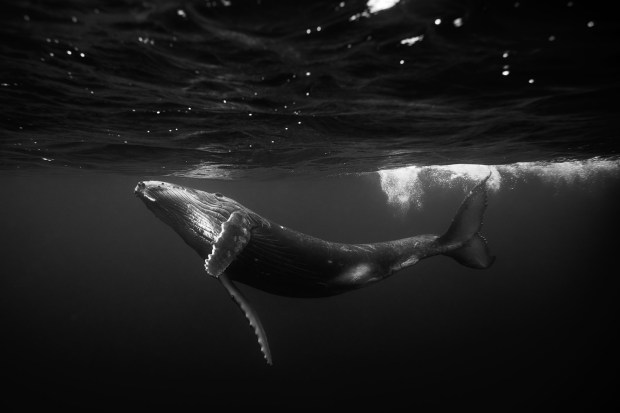 A baby humpback whale photographed in southern Tahiti.