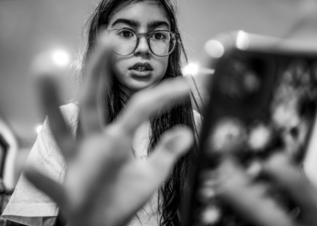 The constant need to be connected, the constant need to consume and create content, the multiple platforms, the never ending snaps, pings and likes with the added peer pressure delivered by adolescence is what makes this environmental portrait so familiar. The constant constantness comes with great intensity.
