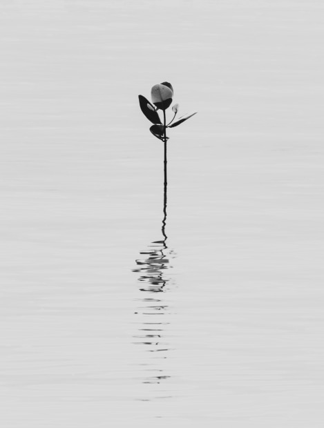 One lonesome sprig of mangrove popping up just above the tide in Cairns