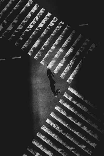 "Sonder" - the profound realization that every passerby has a life as vivid and complex as your own - John Koenig. This series visualises the lives of strangers by cleverly transforming a bustling intersection into a grand public stage—one where each passerby steps into the same role: the main character. This is part of a series, in which the crossing becomes a theatre of fleeting moments. Though many people appear, each frame isolates only one or two figures at a time. Seen from above, and rendered in stark black and white, the compositions erase individuality in the traditional sense—no faces, no identities, no distractions of colour. Yet paradoxically, this uniformity amplifies the emotional weight of each person’s presence.