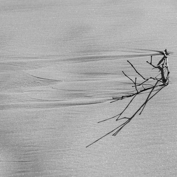 The tide was receding, leaving this solitary branch behind. This moment, this place, felt rich with possibility.