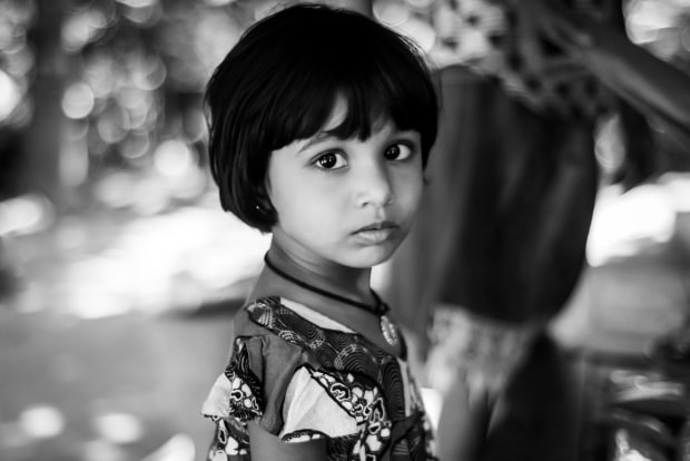 ON tour in Sri Lanka, at a remote Cinnamon farm on Koggala lake, I waiting for my tea and this little girl came out she was posing for photos for the other on the tour and would not look at me. I made a knocking sound with my tongue and she looked at me. I shot this with a Nikon D810 with my 1.8 50 mm. 1/8000 @ f 2