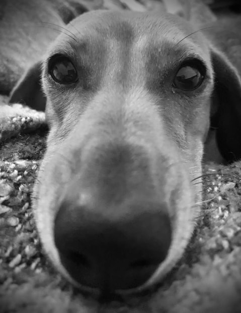 Little Mopsy snuggling up on a cold day sticking her nose in my face