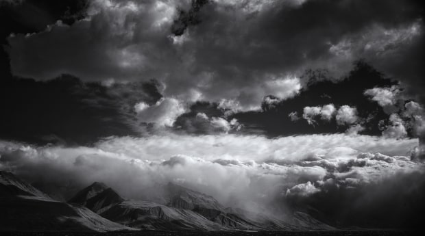 Lakeside at Lake Pukaki early in the morning, there was a storm coming in from the east about to meet one coming over Mt Cook. It made for some epic clouds. Shot with a B&W IR 5D2.