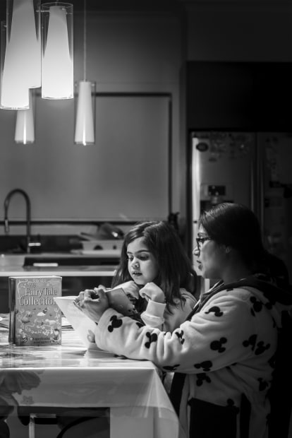 My wife telling story to my 5 year old to keep her entertained during the lockdown.