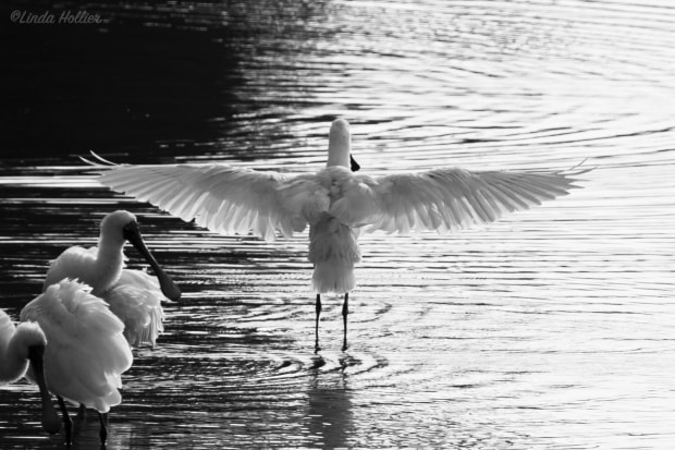 Royal Spoonbills enjoying the quiet waters of a lake at the South Coast NSW. This one kindly decided to stretch its wings.