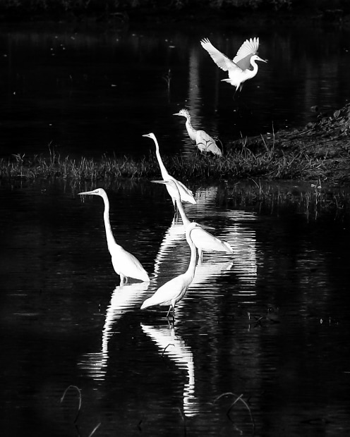 Beauty of Egrets Flocking Lakeside at Dawn