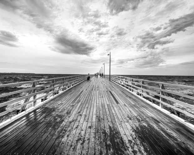 A stroll on the local wharf on a Sunday Afternoon with a storm developing in the background.