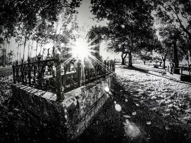 I was looking for something different than just a grave site. Taken close to sunset with Olympus 8mm fish eye lens, working that lens flare.