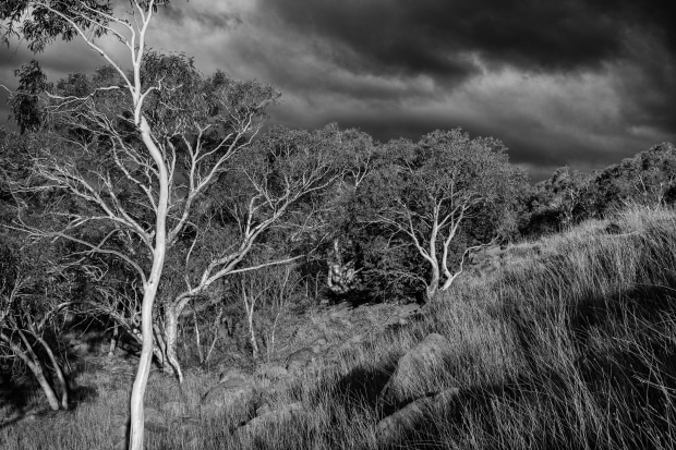 I was confronted by this image when driving around a bend in the road that traverses Lake Jindabyne. It was a late winter afternoon and the gum trees were glowing; the backdrop as bleak as Mordor…a stunning combination, rendered more dramatic in black and white.
