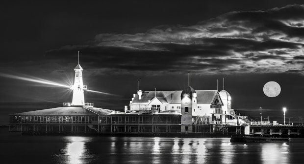 The 2021 Super moon rising over Cunningham pier, Geelong Waterfront, Victoria.