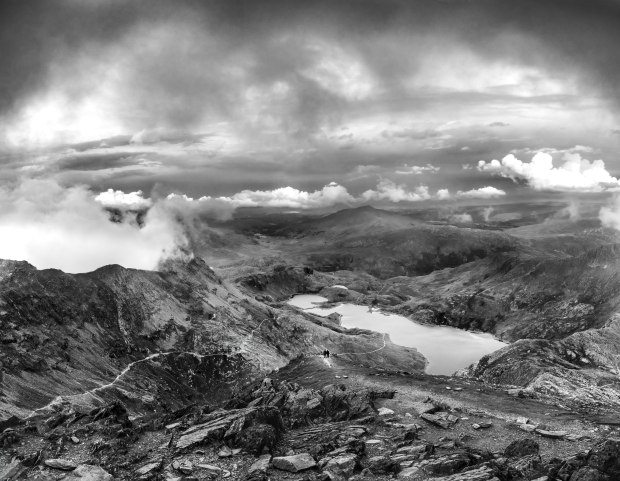 In August last year I took my first visit back home to Wales for four years. While I was there, I decided to challenge myself to climb Snowdon, (Yr Wyddfa in Welsh.) which is the highest peak in England and Wales. The morning of the day I planned to make the ascent was wet and gloomy, but by lunchtime it had cleared up, however, there were thunderstorms predicted for that afternoon. I decided to go ahead anyway and was so glad I did; the weather held right up until the moment I got back to the carpark and took my hiking boots off, perfect timing! The changeable weather and gathering storm clouds made for some fantastic moody skies and dramatic lighting. I took the PYG track up the mountain as the research I had done said it was the most picturesque - it didn't disappoint. I'm not someone who usually includes people in my pictures, however these two really gave a sense of scale to the image and so they got to stay!