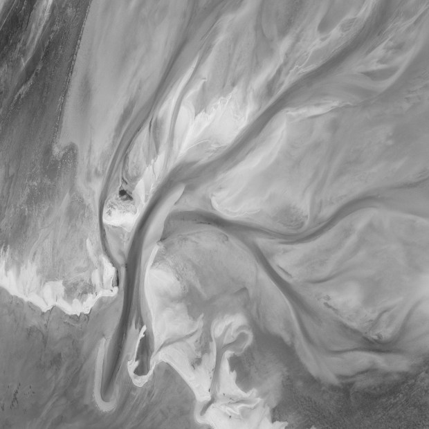 Mesmerizing eb and flow from the air over Shark Bay Western Australia. Ghostly figures appear where land reach the ocean.