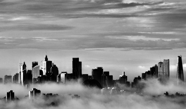 I took this photo after a day of a heavy rain. Next morning i noticed a thick fog with clouds covering Sydney skyline which created a perfect composition for this photo.