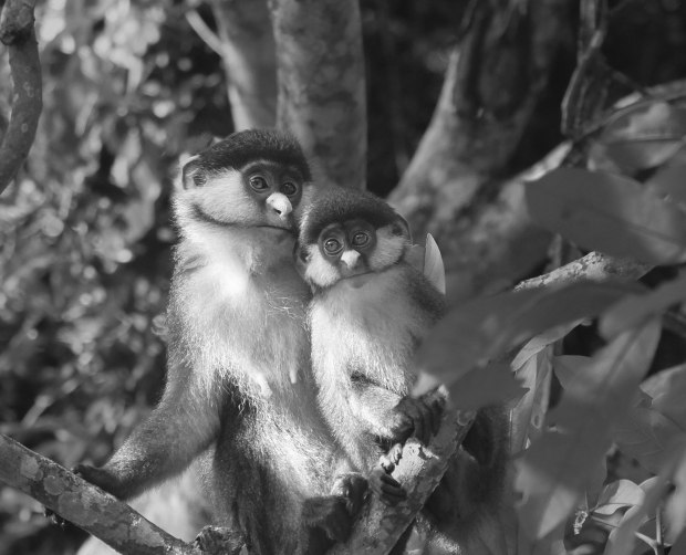 Mother and baby Copper Tailed White Nose Monkeys, Uganda