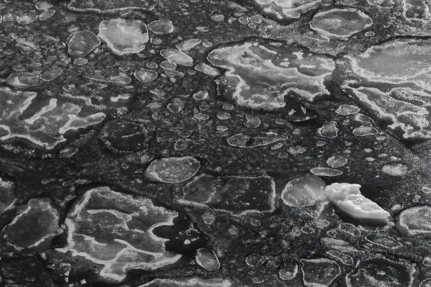 Looking directly down over the side of the ship as the Ross Sea's pancake ice forms around it