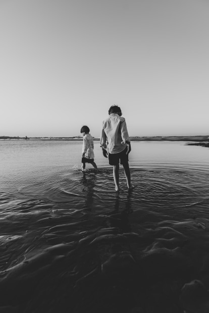 WALKING THROUGH THE WATER POOLS AT THE BEACH ON LOW TIDE