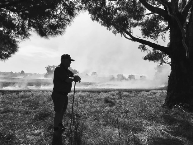 The Burn - is an image of a farmer burning off a stubble paddock ready for planting this years crop.