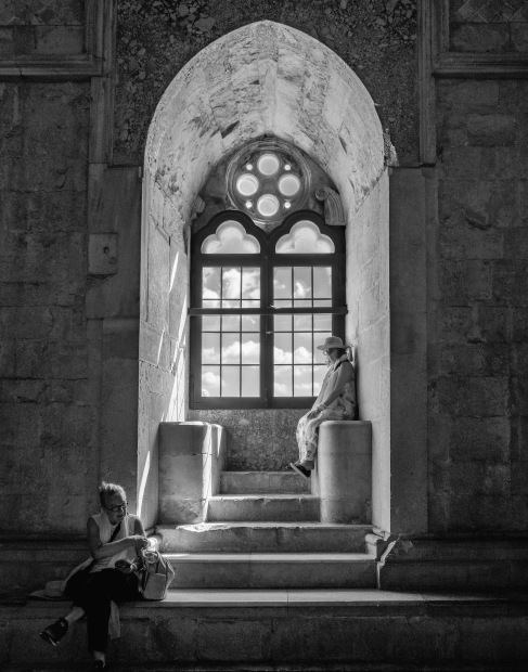 A window at Castel del Monte in Puglia, Italy, provides an environment for visitors to relax.