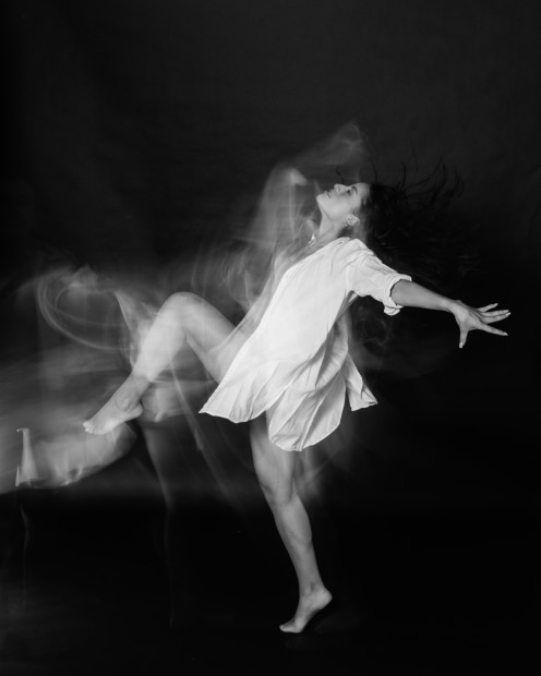 Long exposure capturing the movement of a dancer.