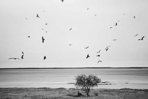 I was in Derby, Western Australia for a pit stop after some travels. The town was once bigger than Broome, but today it is small service town; a crucial stop before you leave the bitumen and hit the Gibb River Road into the Kimberley. The town is surrounded by a vast expanse of salty mudflats. At first glance they seem lifeless and baron but this is not the case. Every other morning locals appear and set up breakfast under one lone tree facing the flats. Underneath it was a comfy armchair. They would set up a fire, make a cuppa and watch the morning go by until it became too hot. Overhead the kites and ravens would circle waiting for leftovers. This image was taken when just one person was left by the tree and the birds of prey were in spectacular numbers. The more I watched the more I realised that this may well be an insight into what life was like before European settlement occurred in Derby just 140 years ago. Sans the armchair of course.