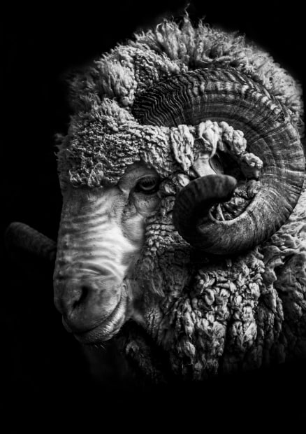 I can't help but think this older Merino Ram is noble and well-respected in the mob. He is the king of the land. The Merino is a breed or group of breeds of domestic sheep characterised by very fine soft wool. This photograph was taken at Glenaan Station, Canterbury New Zealand.