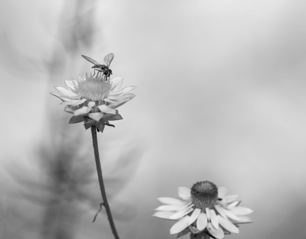 Animals come in all shapes and sizes and over summer the drone flys were in abundance in the garden. They have a habit of hovering around flowers and that is another name for them, the hoverfly. But they dont stay in one postion for too long so waiting for them to settle on a flower offers the best opportunity of capturing an infocus image.