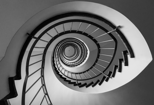 A photo looking upwards of a stairwell in the Raddison Blu in Iceland
