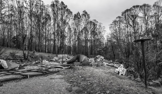 The statue of the little girl sitting on the seat looked sorrowful! She was just sitting, looking at what the devastating bush fires had done to her home and landscape.