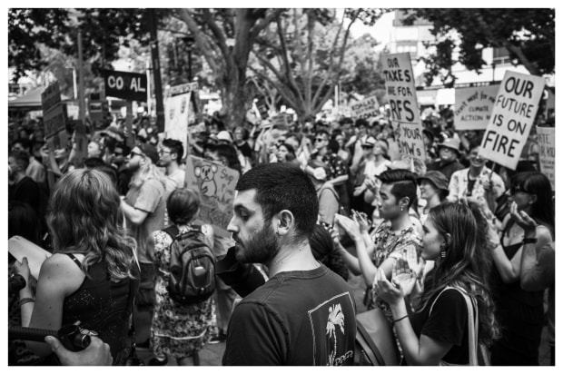 Protests engulfed Australia while bushfires ravaged the country. What was interesting was the sheer number of photographers that gear out to film the human masses. I wanted to understand the person behind the lens and captured this anonymous photographer taking a breather at the Canberra rally.