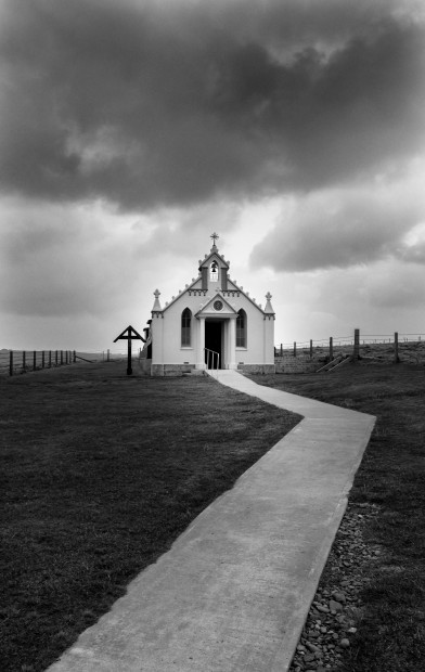 The Italian Chapel sits in a remote area in Orkney, Scotland. It was built out of a Nissen hut by WW2 Italian POWs as a place of worship and been maintained by them since them.