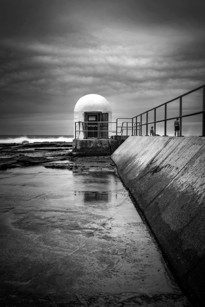 The iconic pumphouse at Merewether Ocean baths on a moody day.
